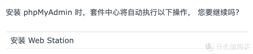 在群晖中安装 phpMyAdmin 和其他套件一样,只需在套件中心搜索即可安装。phpMyAdmin 套件需要依赖 Web Station 和 PHP 8,所以它们会被同时安装。