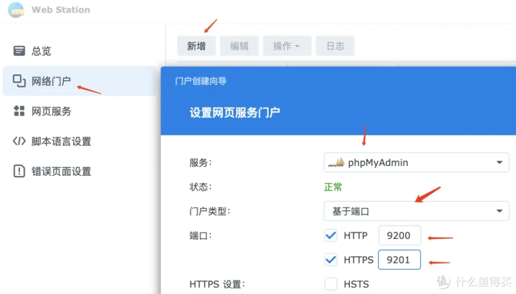 安装完毕后,需要新增网页服务门户,设置类型为基于端口,并配置端口号。(只要没被占用的端口都行)