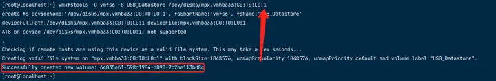 注意路径中的 mpx.vmhba33:C0:T0:L0 部分,后续步骤都会用到(记得替换成你自己的硬盘地址)。
